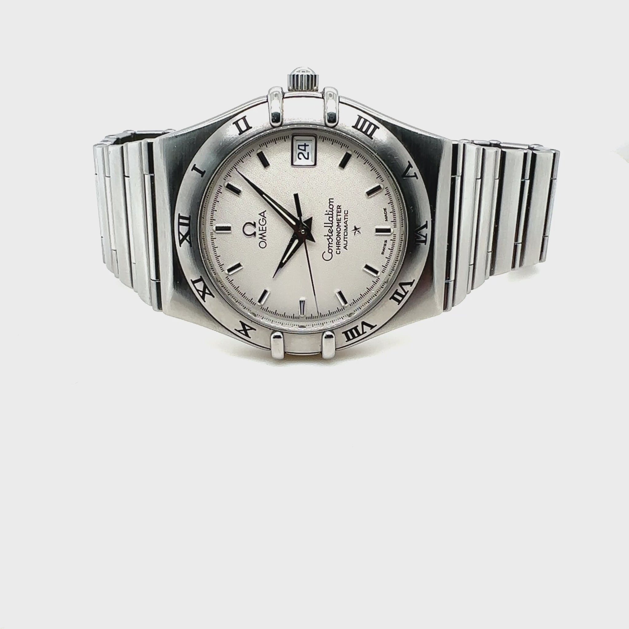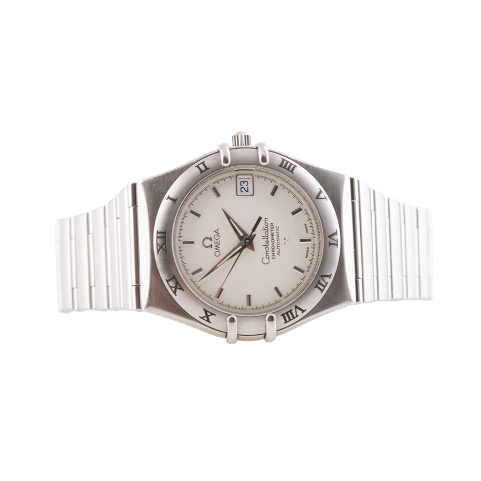 Omega Constellation Armbanduhr in Edelstahl mit Automatikwerk.