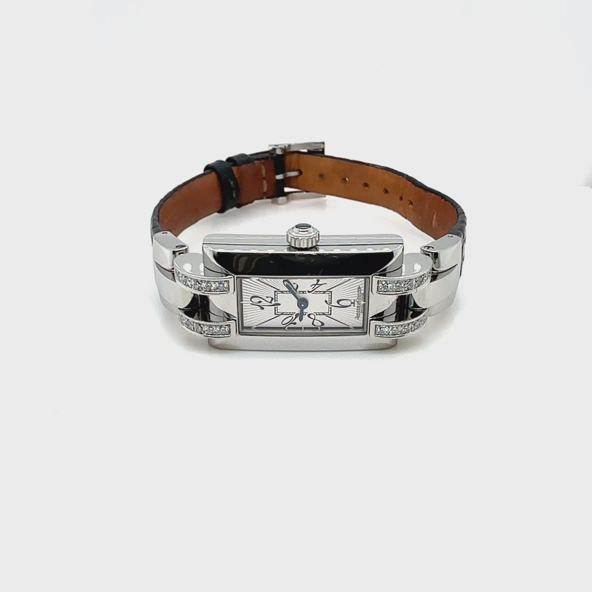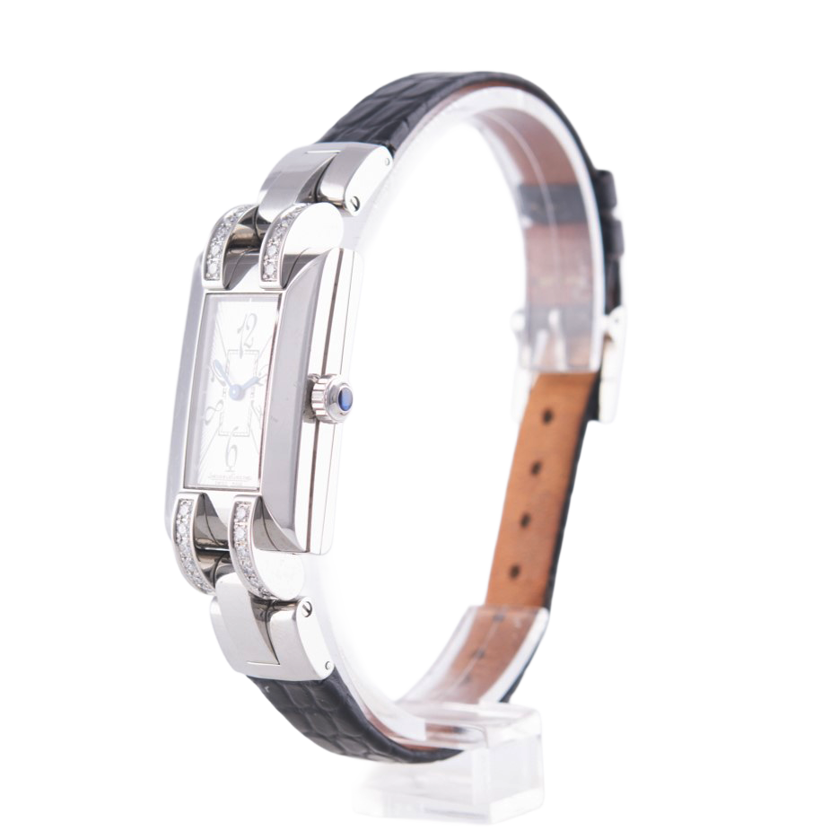 Jaeger LeCoultre Idéale Damenuhr in Edelstahl mit Brillant-Besatz.