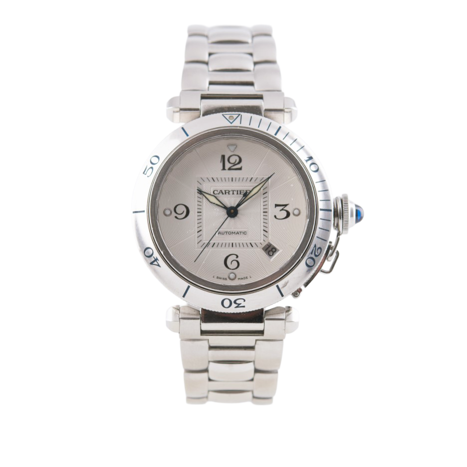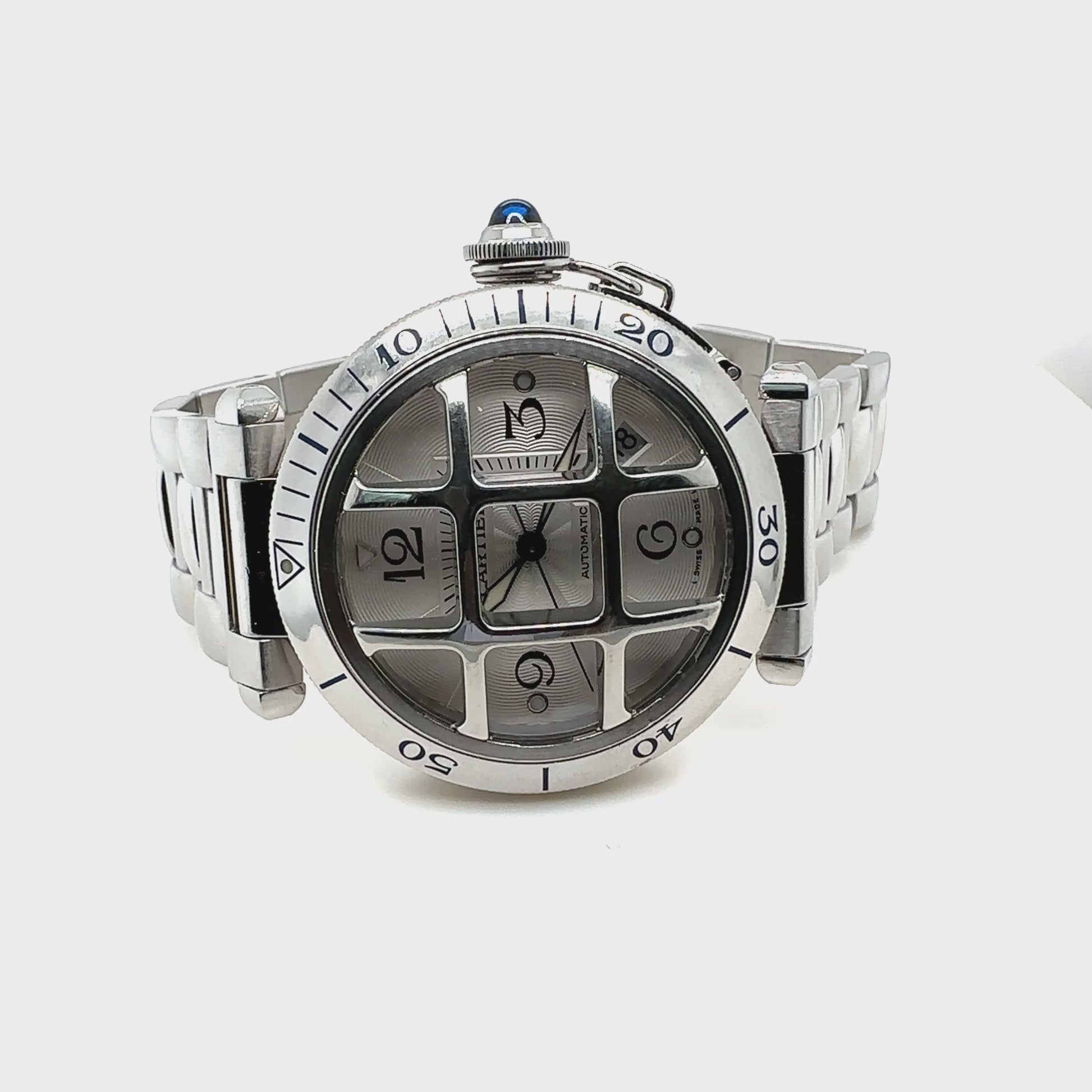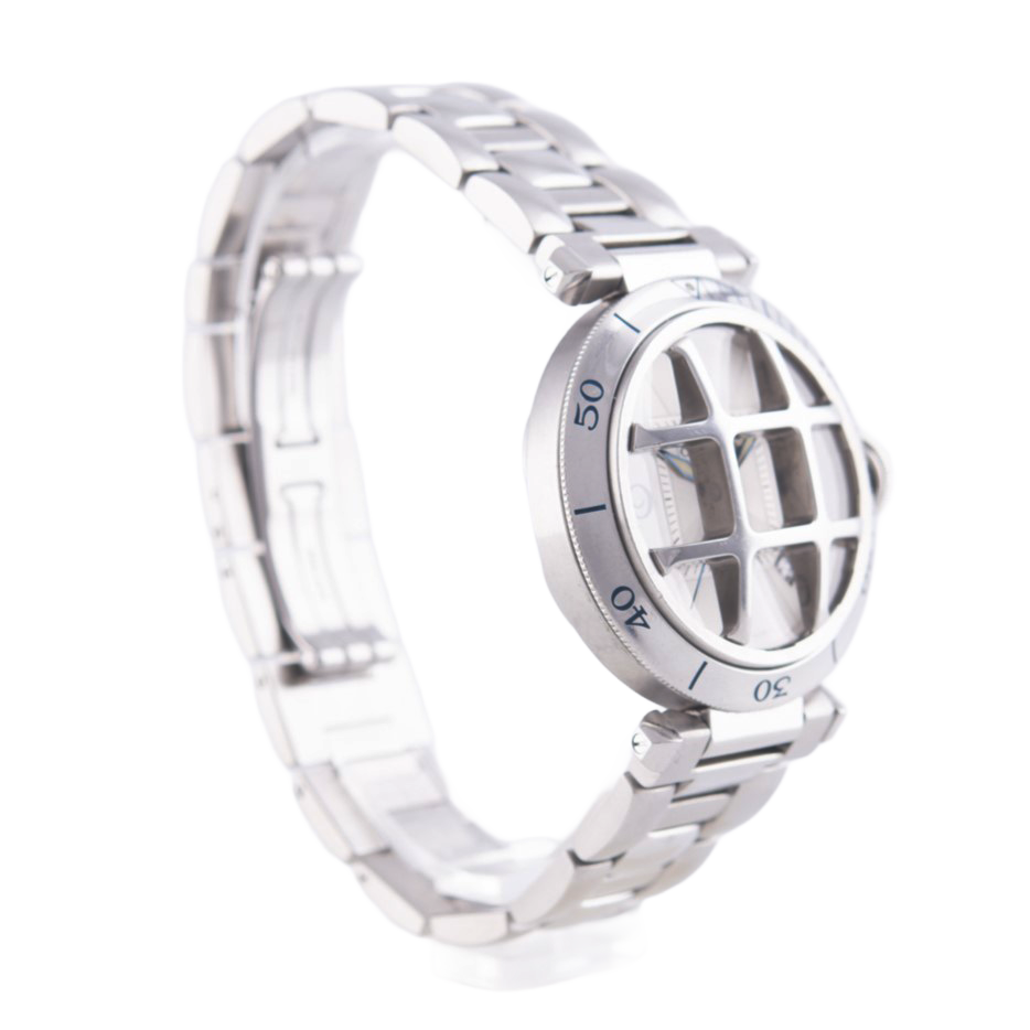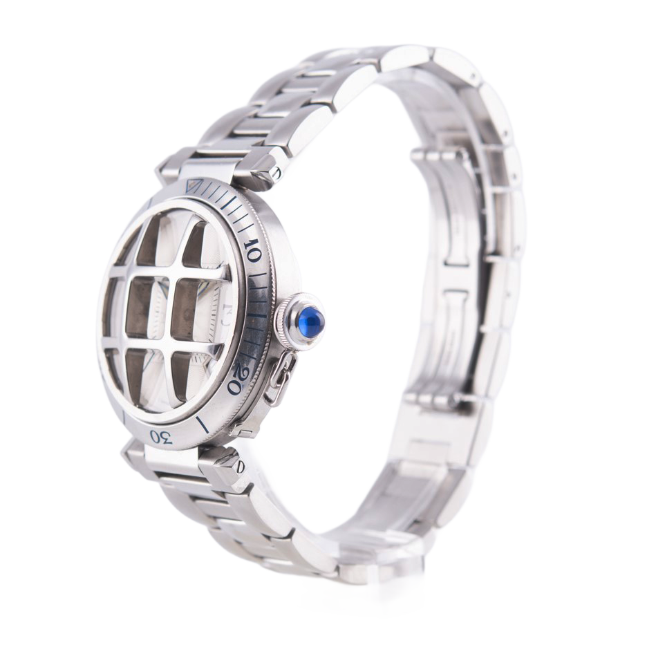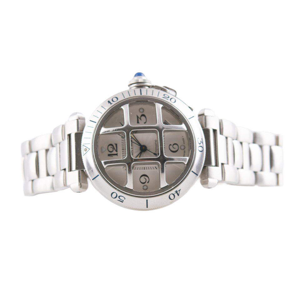 Cartier Pasha Armbanduhr mit Gitter in Edelstahl mit Automatikwerk.
